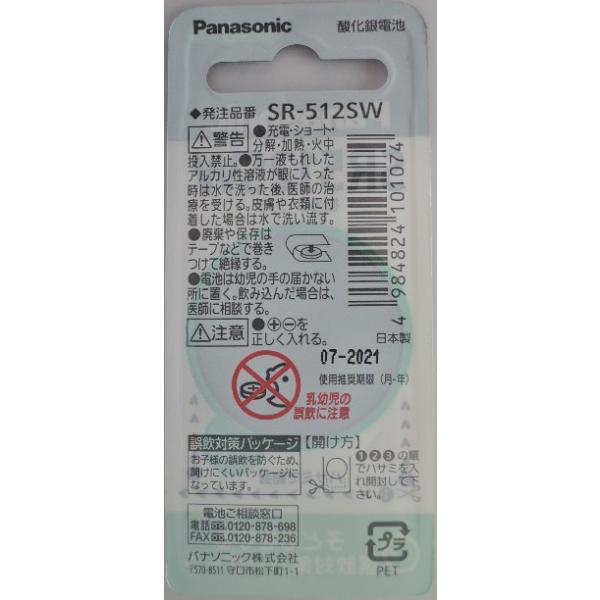 パナソニック 製品番 SR512SW水銀O使用 時計用 酸化銀電池