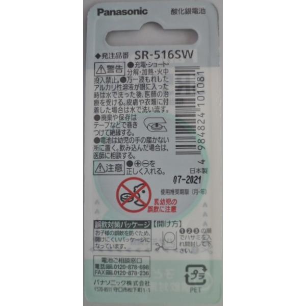 パナソニック 製品番 SR516SW水銀O使用 時計用 酸化銀電池