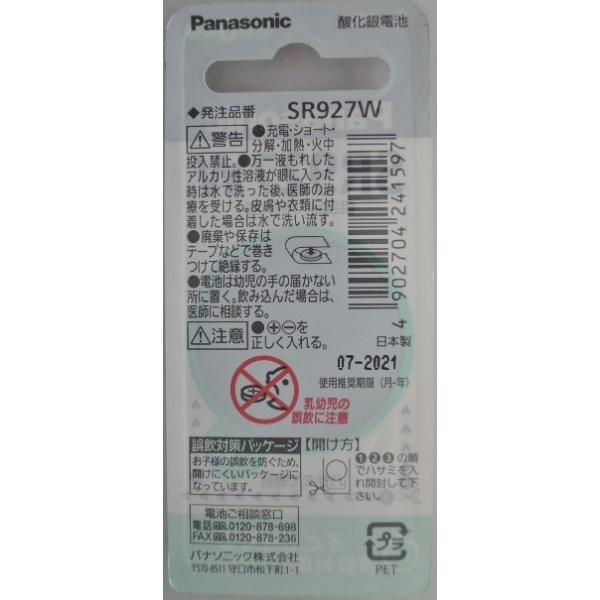 パナソニック 製品番 SR927W水銀O使用 時計用 酸化銀電池