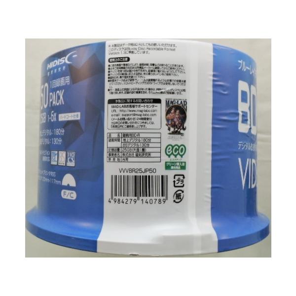 磁気研究所 製品番 VVVBR25JP50 インクジェットプリンター対応。ブルーレイディスク 1回録画用 50枚入り スピンドルケース録画時間 地上デジタル 3時間 BSデジタル 2時間10分
