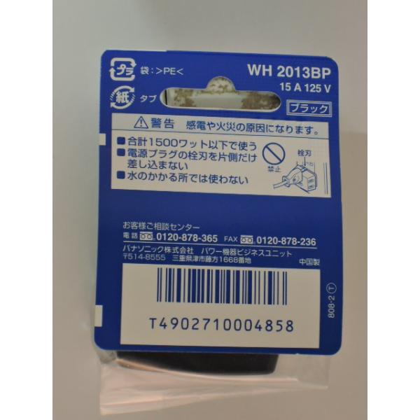 パナソニック 製品番 WH2013BPトリプルタップ 黒 3個口1500ワット以下で使用