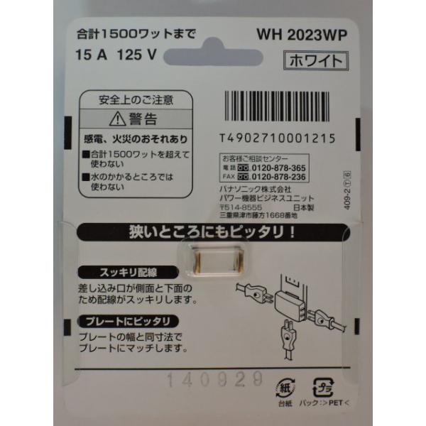 パナソニック 製品番 WH2023WPコーナータップ ホワイト 3個口 1500ワット以下で使用
