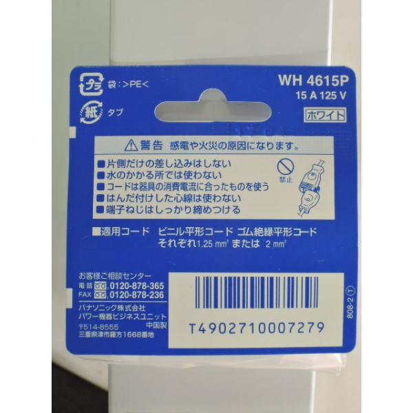 パナソニック 製品番 WH4615Pベター小型コードコネクタボディー ホワイト 1500ワット以下で使用適用電線ビニール平型コード 0.75mm 1.25mm 2mmゴム絶縁平型コード 0.75mm 1.25mm 2mm日本郵便定形外(投函形)での発送です。