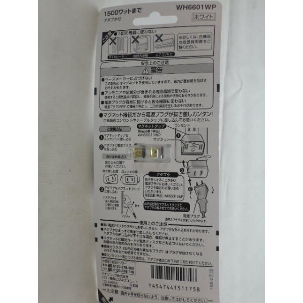パナソニック 製品番 WH6601WPマグネットタップセット 1500ワット以下で使用マグネット接続だから電源プラグが抜き差しカンタン