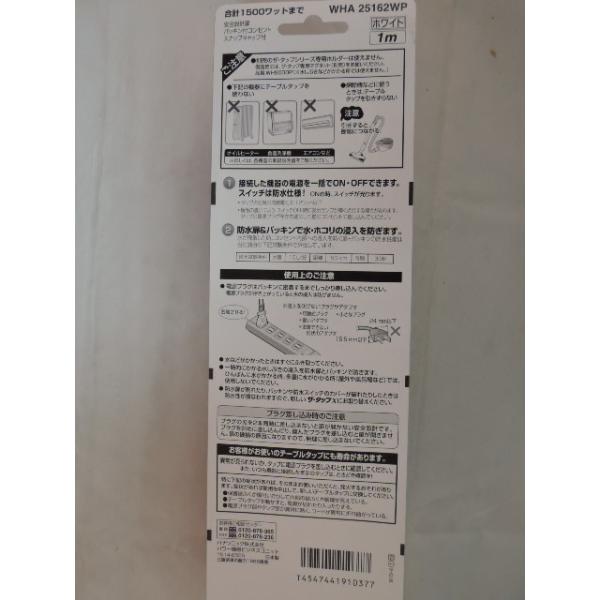 パナソニック 製品番 WHA25162WP6個口1m タップ接続機器を一括ON OFF できます。スイッチは防水仕様安全設計扉 パッキン付コンセント スナップキャップ付合計 1500ワット まで