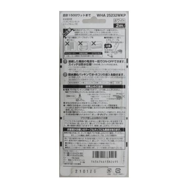 パナソニック 製品番 WHA25232WKP3個口2m タップ接続機器を一括ON OFF できます。スイッチは防水仕様安全設計扉 パッキン付コンセント スナップキャップ付合計 1500ワット まで
