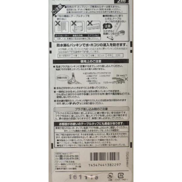 パナソニック 製品番 WHA2523WKP3個口2m タップ 白安全設計扉 パッキン付コンセント スナップキャップ付合計 1500ワット まで