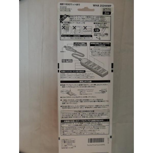 パナソニック 製品番 WHA25244WP4個口2m タップ接続機器を個別にON OFF できます。スイッチは防水仕様安全設計扉 パッキン付コンセント スナップキャップ付合計 1500ワット まで