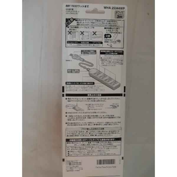 パナソニック 製品番 WHA25344WP4個口3m タップ接続機器を個別にON OFF できます。スイッチは防水仕様安全設計扉 パッキン付コンセント スナップキャップ付合計 1500ワット まで