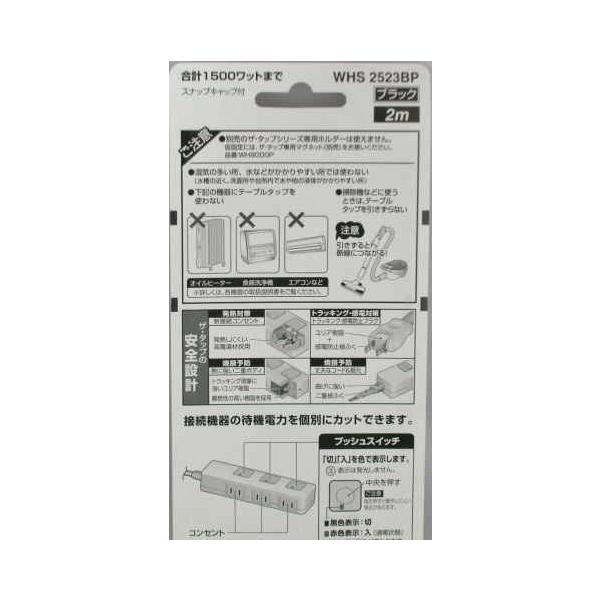 パナソニック 製品番 WHS2523BP3個口2m 黒接続機器の待機電力を個別にカットできます。発熱対策 発熱しにくい高電導材採用トラッキング 感電対策 ユリア樹脂+感電防止被ふく焼損予防 熱に強い二重ボディー 丈夫なコード&根本