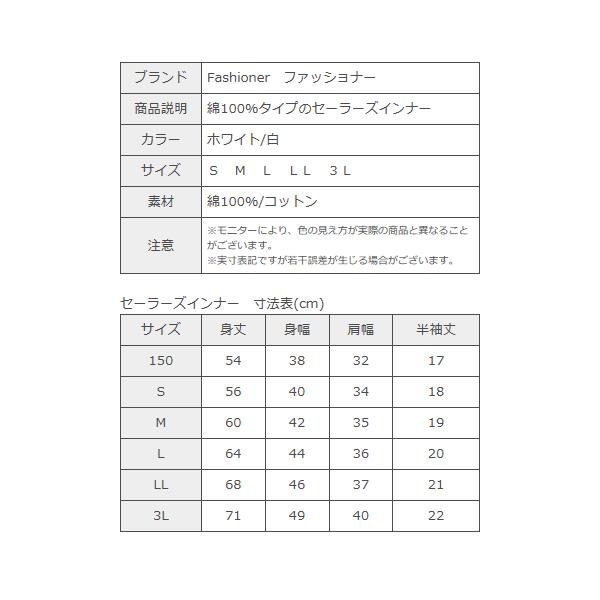 半袖セーラーズインナー 白 綿100% Vネック Fashioner ファッショナー/セーラーズニット/中学生/高校生/制服/セーラー服インナー/下着/女の子/ガールズ