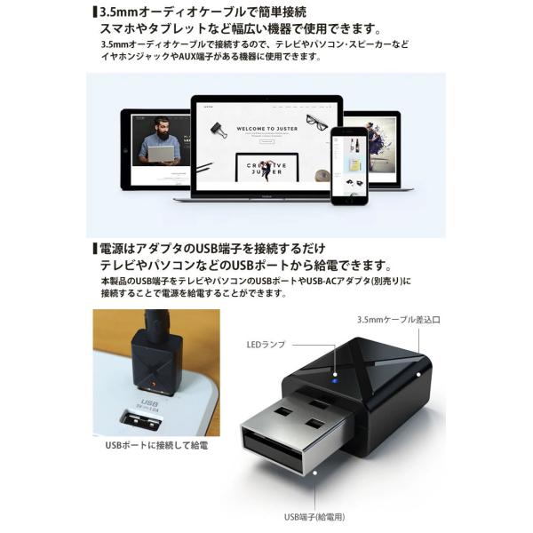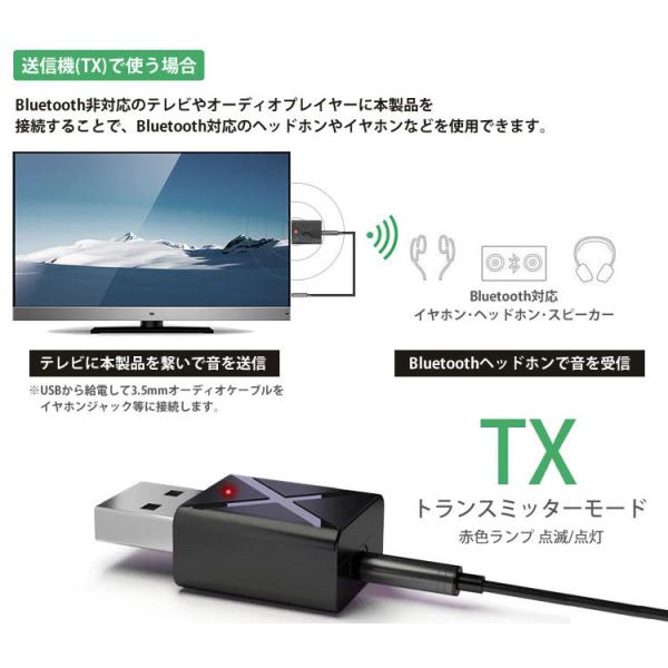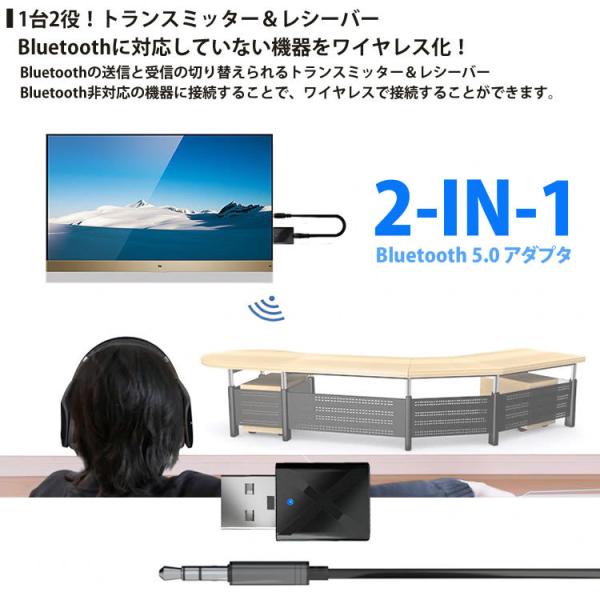 2in1 トランスミッター レシーバー 送受信機 Bluetooth 5.0 テレビ スピーカー iPhone スマートフォン 3.5mm AUX