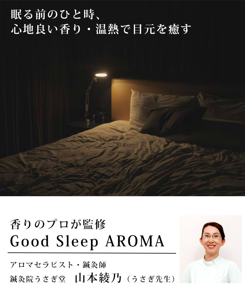 程よい温熱と眠りのためのアロマブレンドで癒す、おやすみ前のHOTアイマスク。