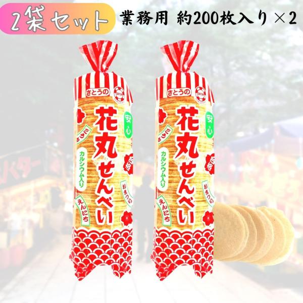 佐藤製菓 花丸せんべい 業務用 〈 約 200枚入 × 2袋セット (約 400枚入) 〉 駄菓子 縁日 大容量ミルクせんべい 祭り セット