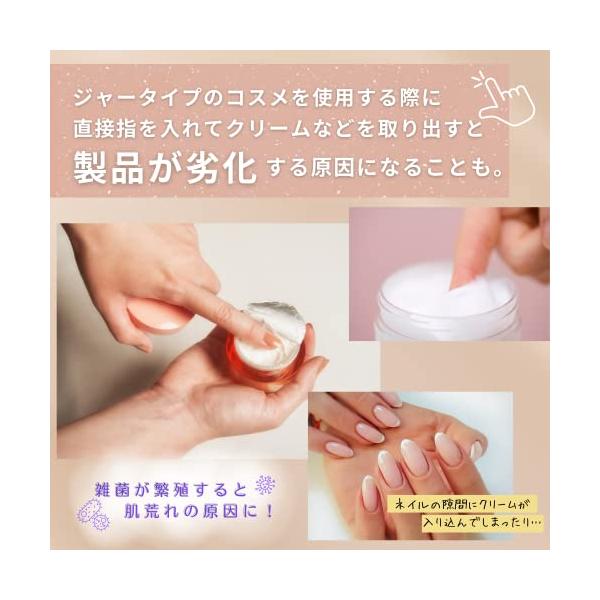「商品情報」「主な仕様」手には目に見えない細菌がいっぱいです。 スパチュラ を使えば、直接手で触れることなく クリーム を取り出すことができ、雑菌の繁殖による、製品の劣化や 肌荒れ の防止にも◎
