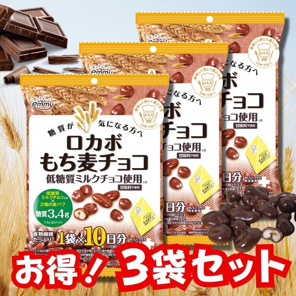 ? 食物繊維 たっぷり!ロカボな食生活に最適なもち 麦チョコ です。小分け包装10日分パック×3袋セット♪