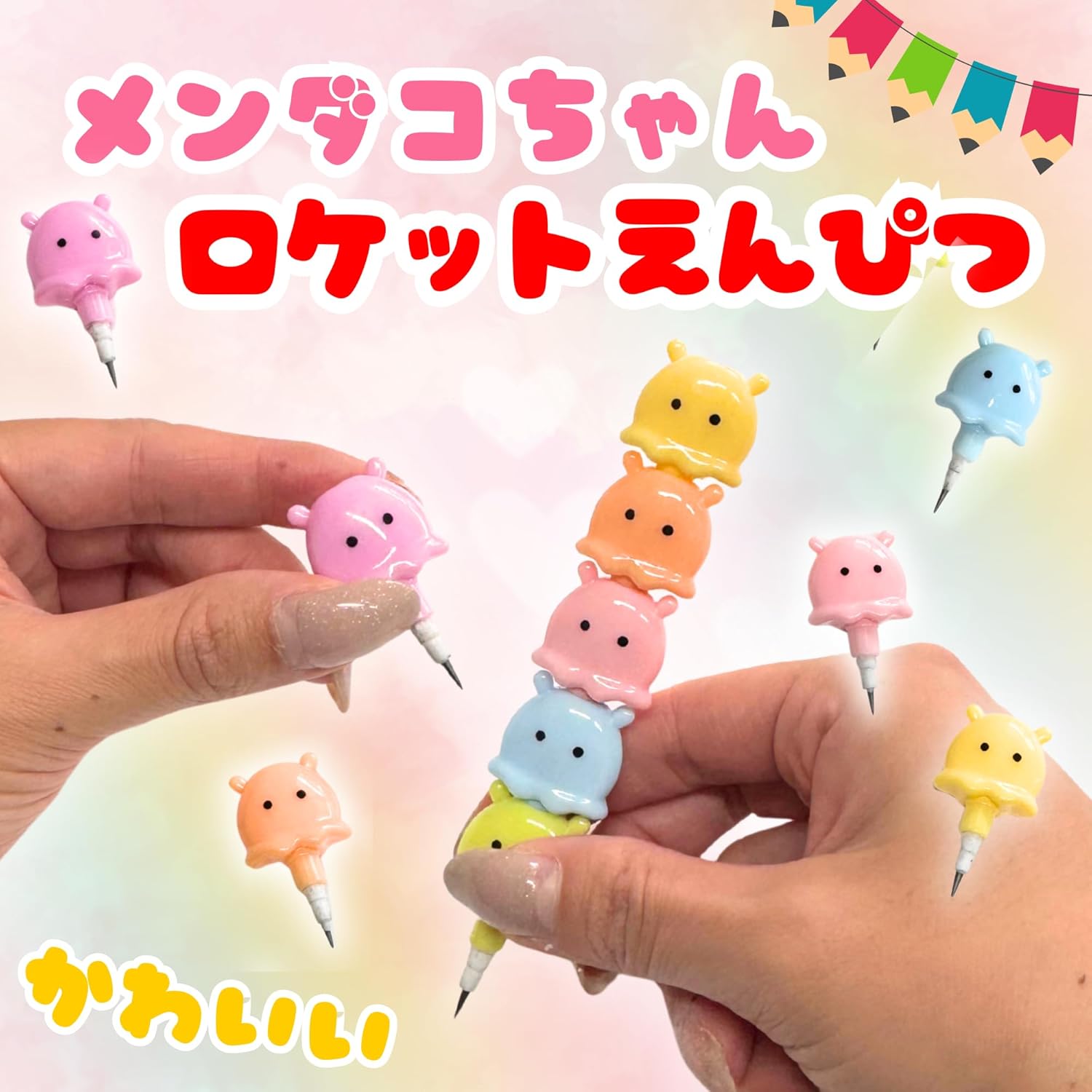 【嬉しい 縁日 用品】 メンダコ えんぴつ セット 個包装 ロケット鉛筆 〔 お祭り/イベント/子供会/露店/縁日 〕 縁日 景品 文房具 可愛い 女の子 小学生 (50本)