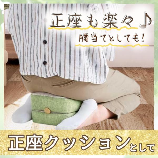正座をサポートして疲れを軽減するアイデア商品。他にも枕やひじ掛けにもアレンジでき、多用途に使えるマルチクッションです。 ※色はお選びいただけません(グリーン、ブルーの2色。どちらかのお届けになります)