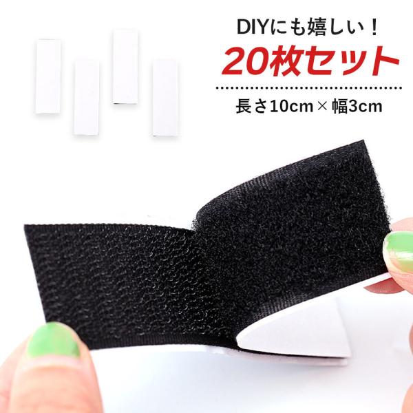 マジックテープ 10cm × 3cm 20枚セット 強力 バンド 面ファスナー 超強力 両面テープ 固定 防水 耐熱 防塵 DIY テープ