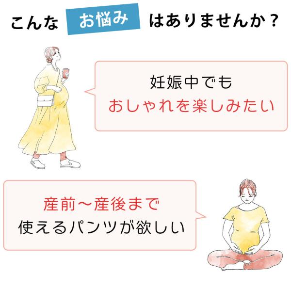 産前〜産後まで使えるおしゃれなパンツ。