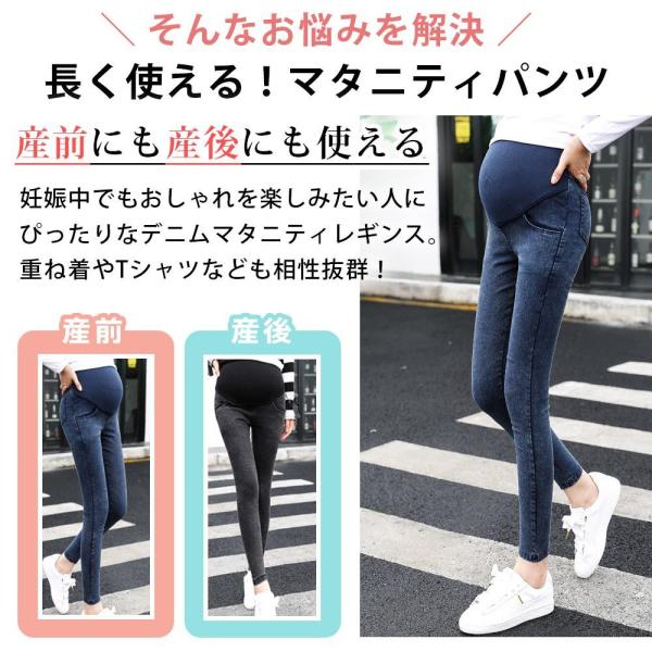 マタニティ レギンス デニム ズボン 春 夏 パンツ おしゃれ 妊婦服 妊婦 妊娠 初期 中期 産後 レディース 脚長 スキニー ストレッチ 伸縮