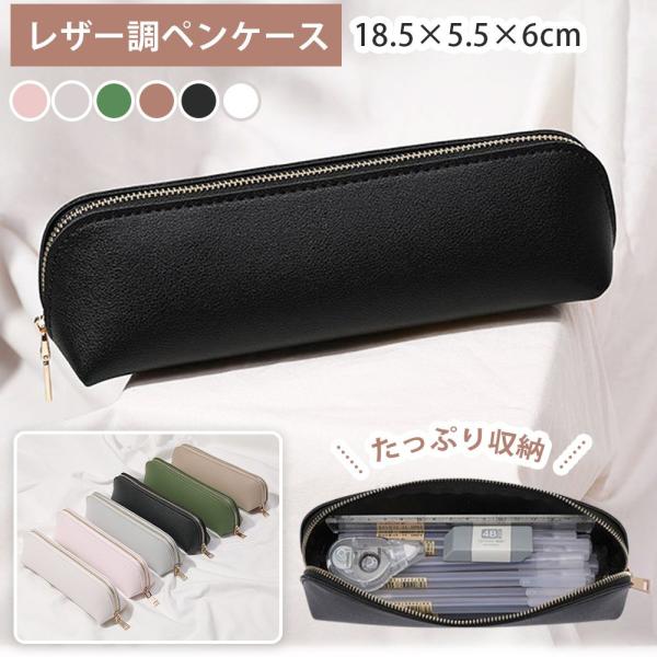 ペンケース おしゃれ 大人 シンプル 筆箱 ペンポーチ PUレザー コンパクト スリム 文房具 ステーショナリー ふでばこ