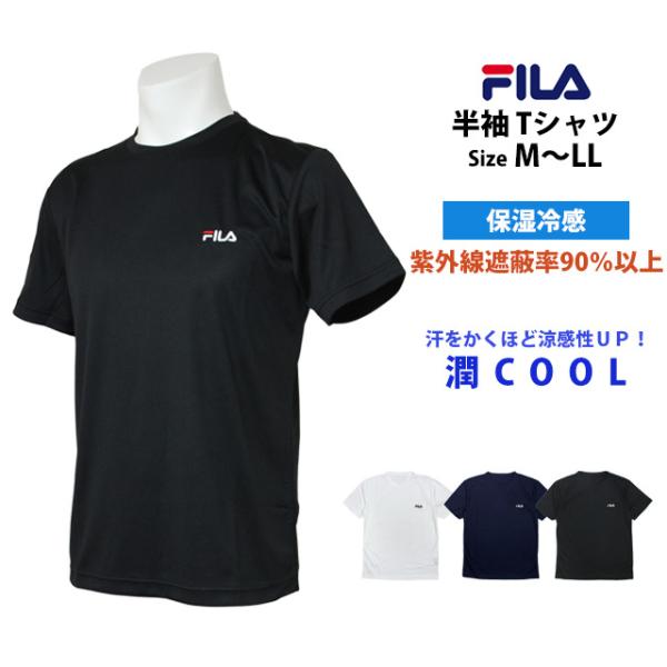 半袖 Tシャツ メンズ フィラ FILA クルーネック 丸首 吸湿冷感 UVカット シンプル カットソー 男性 大人 潤COOL M L LL