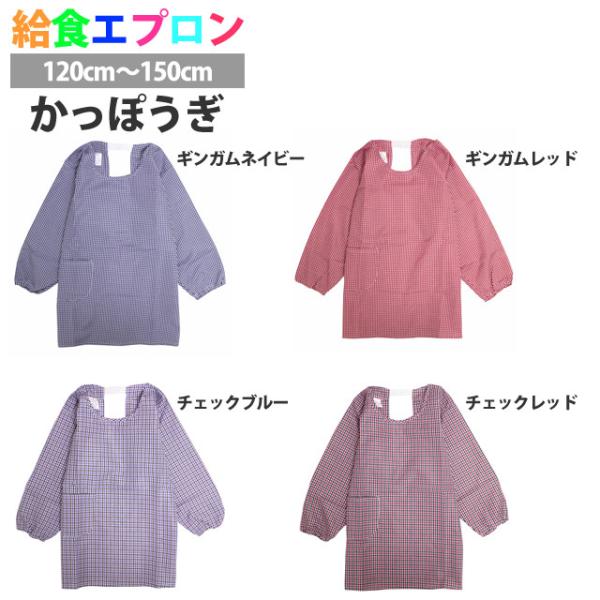 かっぽう着 子供用 キッズ 男の子 女の子 チェック柄 割烹着 小学校 学校 給食エプロン 子供エプロン キッズエプロン 120cm130cm140cm150cm