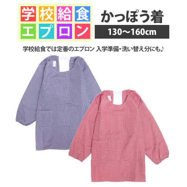 給食着 小学校 エプロン かっぽう着 子供用 キッズ 男の子 女の子 給食 チェック柄 割烹着 学校 子供エプロン 小学生 130cm 140cm 150cm 160cm