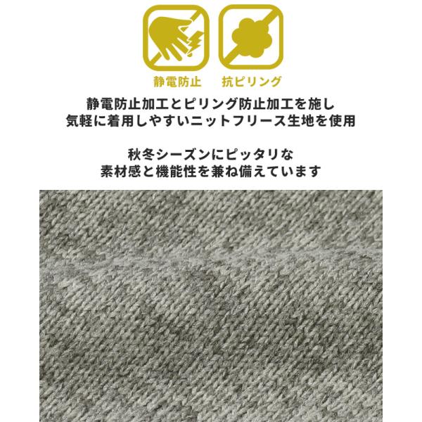 静電気防止加工とピリング(毛玉)防止加工が施され、より一層気軽に着用しやすくなっています。