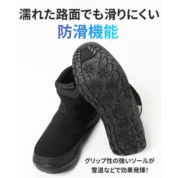 グリップ性の強いソールを使用し滑りにくい設計で、雪の日などの滑りやすい路面で力を発揮!
