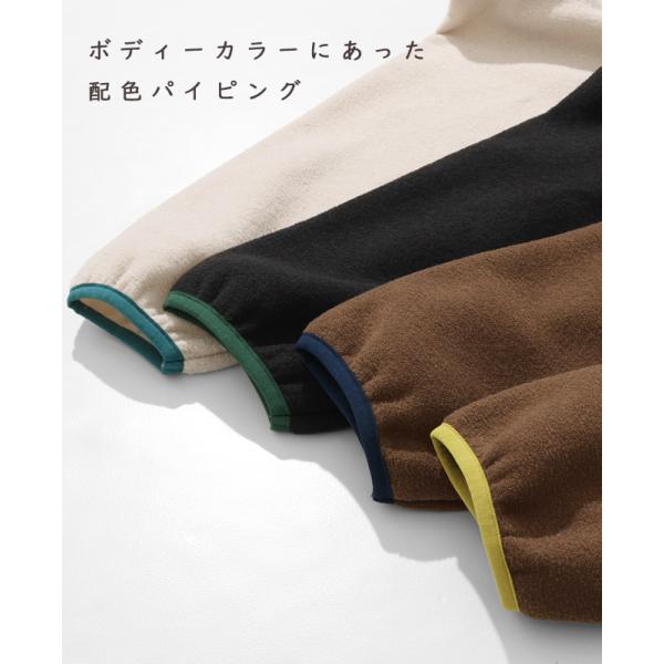 袖口や裾などの配色ニットパイピングがアクセントになっており