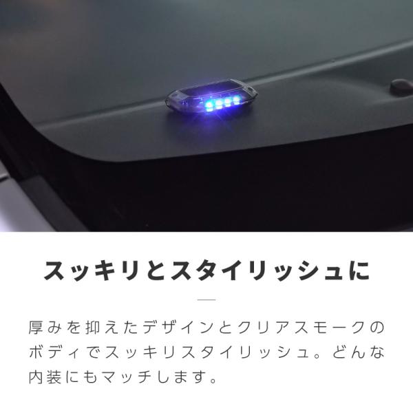 車 ダミー セキュリティー ダミーセキュリティー LED ソーラー USB 充電式 赤 青 盗難防止 車上荒し対策 小型 薄型 コンパクト 車上荒しやいたずらをLEDで警戒、警告。超薄型ダミーセキュリティライト。