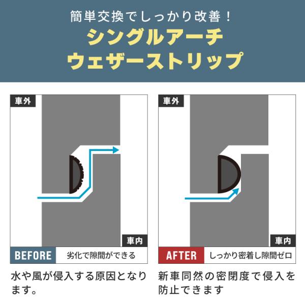 劣化したウェザーストリップを外して貼り付けるだけで簡単にリペアできます。