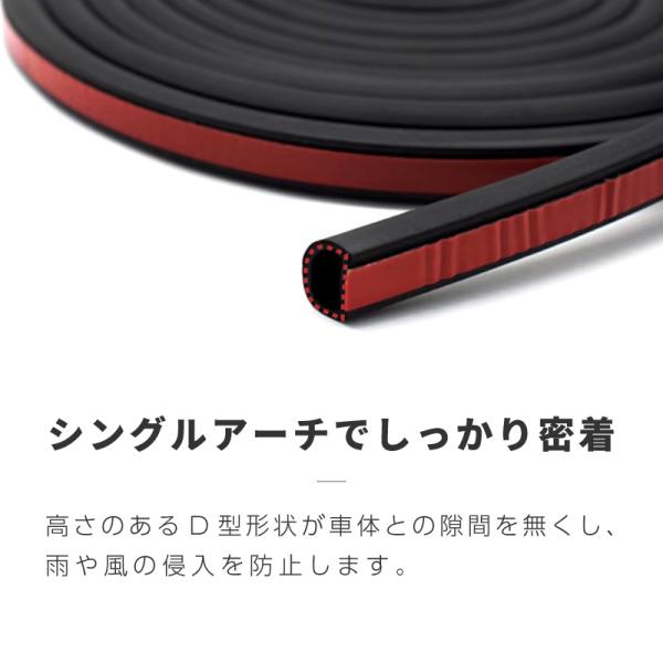 ウェザーストリップ 汎用 静音 防音 防水 車 D型 ロードノイズ 風切り音 騒音防止 静音モール 静音テープ ドア ボンネット バックドア ハッチバック ラゲッジ 補修 メンテナンスD型形状で純正と変わらない防水性を発揮します。