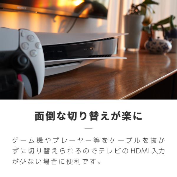 2台の機器を1台のテレビに接続して映像を切り替えられるので、テレビのHDMIを有効に活用できます。