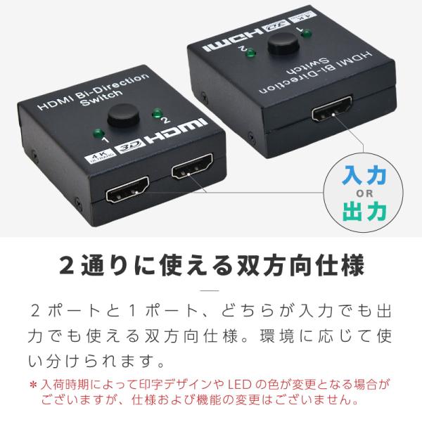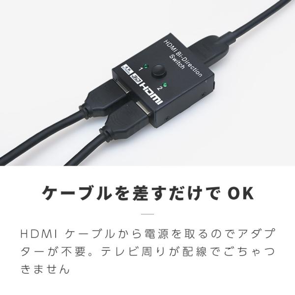 HDMI 切替器 分配器 1入力2出力 2入力1出力 セレクター ケーブル 4K 3D ps5対応 モニター テレビ ディスプレイ オーディオ プレーヤー DVD ブルーレイ Switch スイッチ ゲーム 映像切替 スイッチャー 2k スイッチ一つで映し出すテレビや接続する機器を切り替えできる、2wayHDMI切替器。