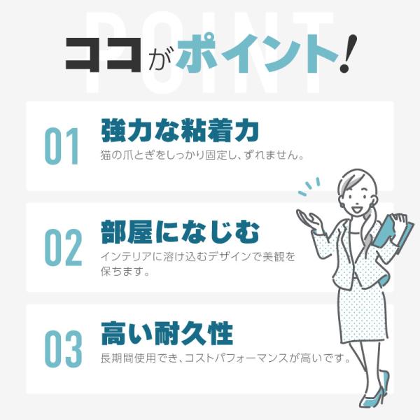 猫 爪とぎ防止シート 爪とぎシート 100cmx30cm 爪研ぎシート 貼れる はがせる ソファー 壁 キャットタワー ケージ 縦型 横型 縦長 横長 カット可 おしゃれ 取り替え 大判 傷防止 猫用品 しつけ用品フリーカットタイプの猫用爪とぎシートです。粘着力が強く、しっかり固定されるためズレにくく安心。貼るだけの簡単設置で、DIYが苦手な方でも扱いやすい仕様です。0.3cm厚のシートはハサミで自由にカット可能。裏面には1cm・10cmのガイド付きで、まっすぐ切るのも簡単です。爪とぎによるゴミが少なく掃除もラク。部屋になじむカラーで、家具や壁を傷から守りつつ美観も損ねません。選べる3サイズで広範囲にも対応できます。
