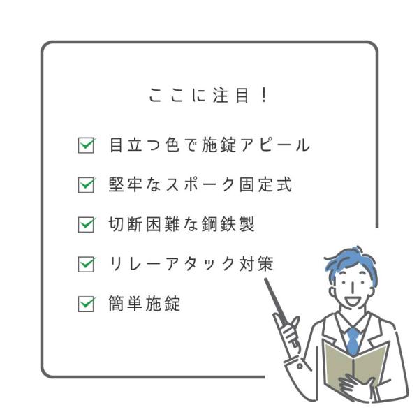 ハンドルのスポークに固定するのでハンドルを切断して外される事がなく高い防犯効果を発揮します。