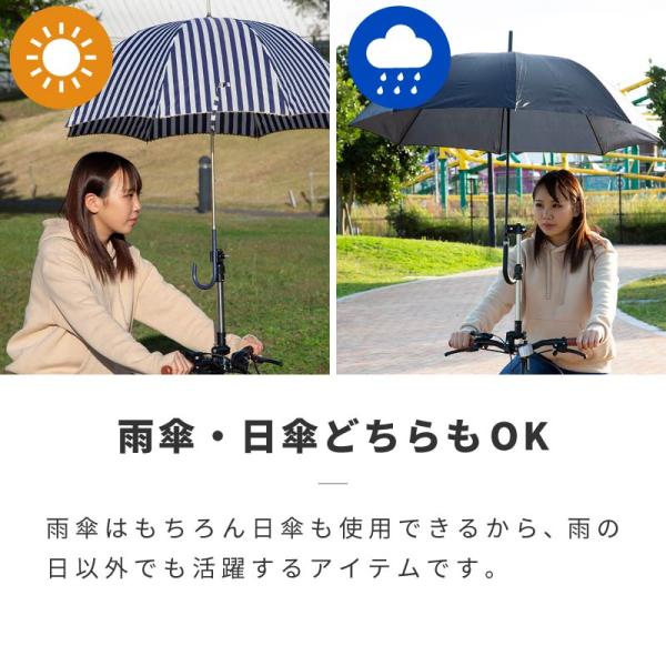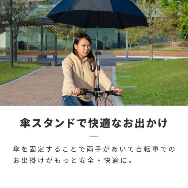 自転車 傘ホルダー 傘スタンド 高さ調整 角度調整 取り付け簡単 軽量 コンパクト 通勤 通学 傘さし 傘立て ベビーカー 車いす 手押し車 シルバーカー 傘をさしたまま両手が自由に使えるのでとても便利です。