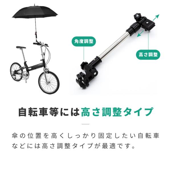 自転車 傘ホルダー 傘スタンド 高さ調整 角度調整 取り付け簡単 軽量 コンパクト 通勤 通学 傘さし 傘立て ベビーカー 車いす 手押し車