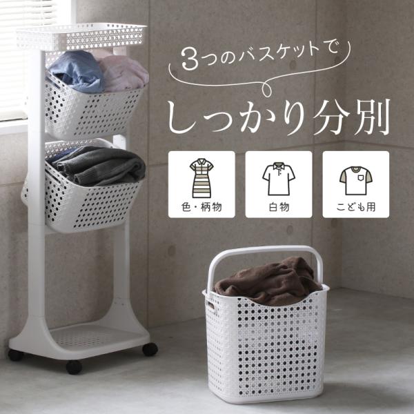 ランドリーバスケット 3段 キャスター スリム メッシュ おしゃれ 大容量 天板 ランドリーラック ランドリー収納