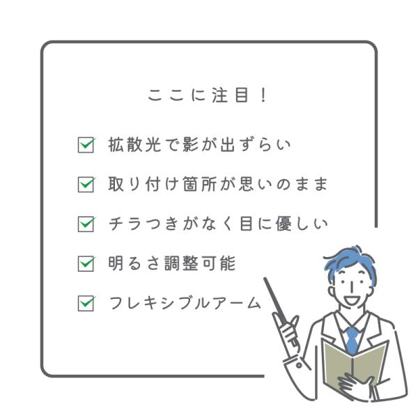 拡張光で影ができにくい設計。広い範囲で手元を明るく照らします。