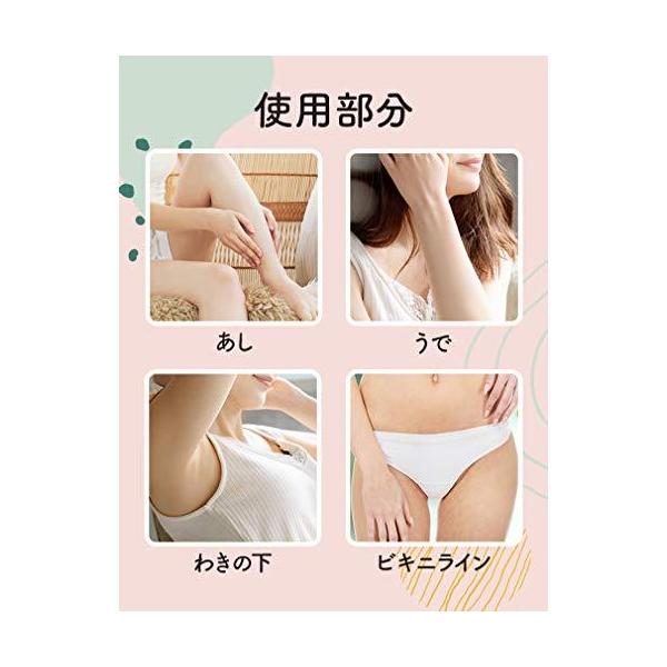 保湿成分のアーモンドオイル、ビタミンEを配合し、敏感肌の人にもお使いいただけます。水に流れにくい成分を含むため、シャワーを浴びながらの除毛もOK。