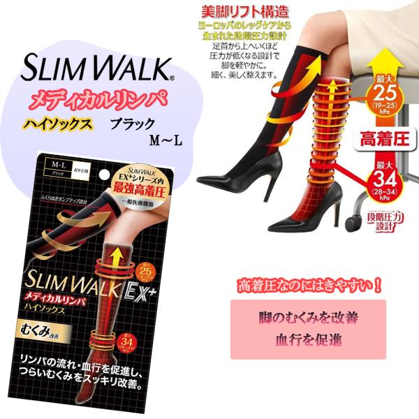 【一般医療機器】ピップスリムウォーク メディカルリンパ おでかけ用 ハイソックス ブラック ML