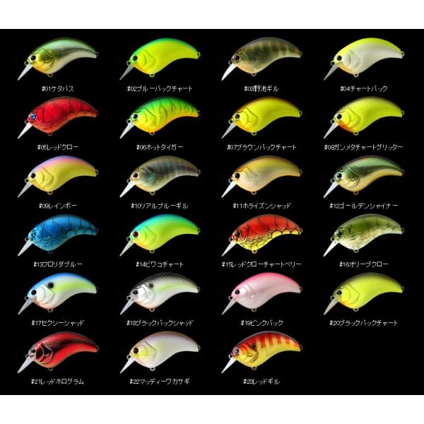 ■カラー:01ケタバス / 02ブルーバックチャート / 03野池ギル / 04チャートバック / 05レッドクロー / 06ホットタイガー / 07ブラウンバックチャート / 08ガンメタチャートグリッター / 09レインボー / 10リアルブルーギル / 11ホライズンシャッド / 12ゴールデンシャイナー / 13フロリダブルー / 14ビワコチャート / 15レッドクローチャートベリー / 16オリーブクロー / 17セクシーシャッド / 18ブラックバックシャッド / 19ピンクバック / 20ブラックバックチャート / 21レッドホログラム