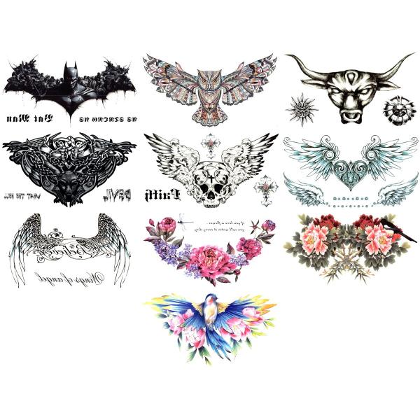 □台紙サイズ□約24cmx約13.8cm横に幅のあるタイプで、胸元や背中(首下)にもぴったり。翼モチーフで存在感あるデザインをお楽しみください。水でぬらして貼るタイプです。※商品画像の色味は画面でみた場合と実際は多少の色差が生じる場合がございます。