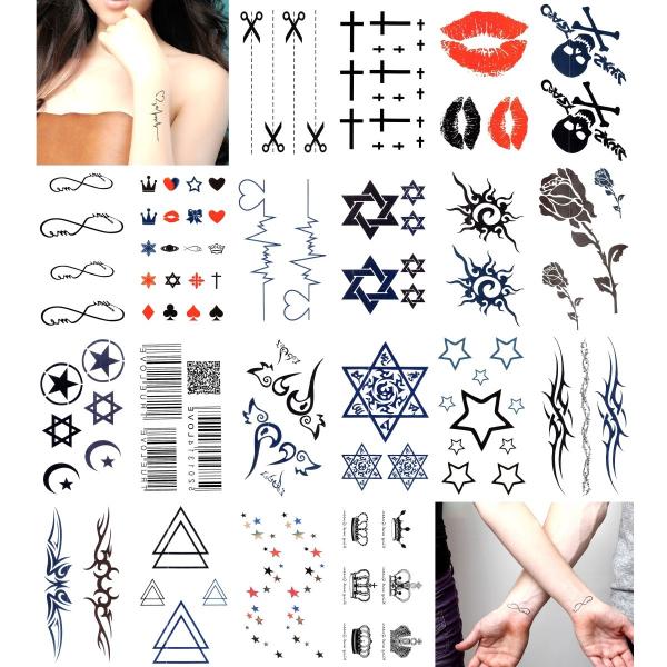 タトゥーシール 30枚セット(1) 花 蝶 薔薇 トライバル 韓国 インスタ 文字 英文 星 ワンポイント 入墨 刺青 防水