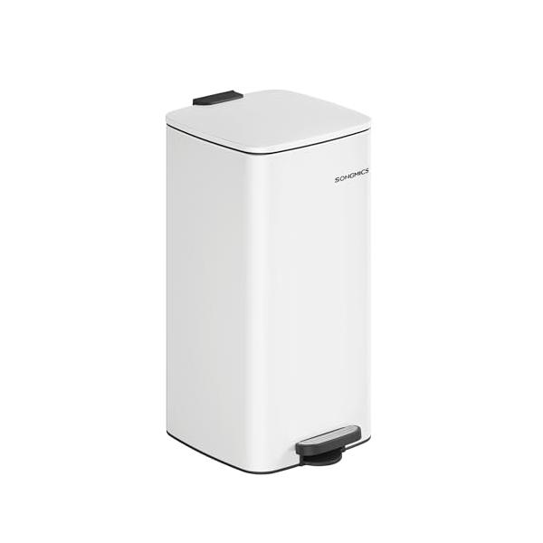 SONGMICS ゴミ箱 スリム 30L ペダル式 蓋付き ステンレス製ダストボックス キッチン、リビング、洗面所隙間用 大容量 音が静か 袋が