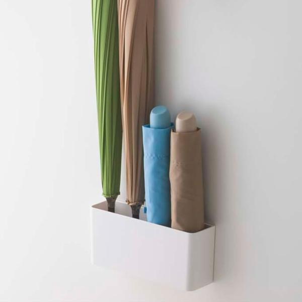 【磁石で玄関ドアなどに取り付けるタイプの傘立てです。】